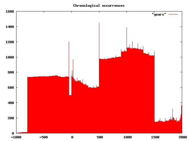 Just for fun: frequenties of chronological references in a collection of 750 reports.